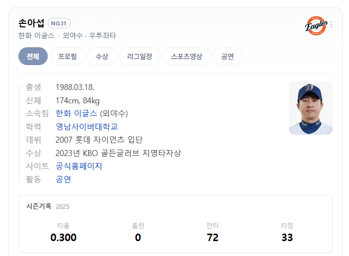 3. 2025시즌 손아섭의 현재 모습